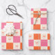 Chequerboard Skulls in Pink, Orange, & Cream Wrapping Paper Sheet