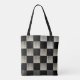My original digital art on this tote bag features a vintage style pattern of chequerboard spaces processed and created for an artsy style. The front has black and grey squares with fabric textured technique, and the back has the same pattern which gives a retro vibe for a classic touch. These bags are great for carrying groceries, books, bible studies, toys, or use as a beach bag or gym bag; anything you need to carry around! This can also be used as a Gift Bag - stuff it with all kinds of goodies for anyone or as a swag bag at weddings! These bags are 16” x 16” with a 28” strap. All bags have a black laminated lining for sturdy support as well.