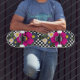 Chequered and Flowers Skateboard