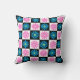 Chequered Aster Pink Blue Floral Abstract Cushion
