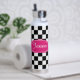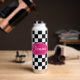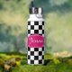 Stay stylish and organised with our Chequered black and white hot pink custom label Water Bottle featuring hot pink accents and a customisable name label. This sleek and functional design is perfect for staying hydrated on the go.