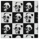 Black and White Chequered Geometric panda bear Pattern Design Fabric