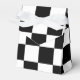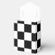 Make your party favours stand out with stylish custom tent favour boxes featuring a bold black and white chequered pattern made of rows of alternating white and black squares.