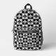 Chequered Black White Fleur-De-Lis Pattern Printed Backpack