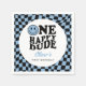 Chequered blue preppy smile 1st birthday custom paper napkin.