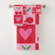 Chequered Cherries with Pink Hearts Pattern Bath Towel Set