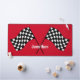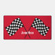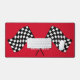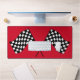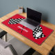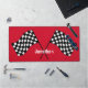 Chequered Flag Desk Mat, with customisable text. and background colour..