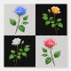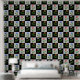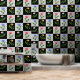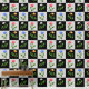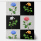 Chequered Geometric Four Colour Rose Flower Stalk Repeat Pattern Design