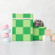 Abstract digital art of green and lighter green squares in a chequered formation.