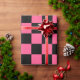 Abstract digital art of hot pink and black squares in a chequered formation.