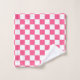 Abstract digital art of hot pink and white squares in a chequered formation.
