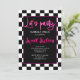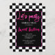 Chequered hot pink black white Lets party Sweet 16 Invitation