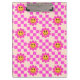 Chequered Hot Pink Smiling Flowers with Squares Clipboard