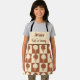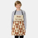 This is custom name personalised apron for kids and young chefs featuring cute chequered simple vanilla and chocolate ice cream cones pattern on cream and brown checkerboards. It's perfect gift for kids who love ice cream