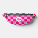 Chequered light pink hot pink geometric retro Monogram Fanny Pack. Cool fashion accessory bag for her. Vintage tile pink modern chequered. Create a unique and personalised Fanny Packs with a custom touch! Modern monogram with your initial and your name for that extra personal flair.