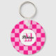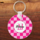Chequered light hot pink geometric retro Monogram keychain. Accessories gift for her. Cool retro chequered geometric square pattern. Vintage tile hot pink modern chequered. Personalise with your custom initial and name.