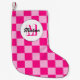 Chequered light hot pink geometric retro Monogram Small Christmas Stocking