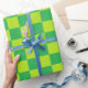 Abstract digital art of green and a lime green colour squares in a chequered formation