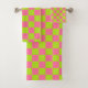 Chequered Lime Green and Pink Bath Towel Set