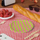 Chequered Lime Green and Pink Paper Plate