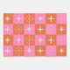 Chequered Mid Century Pink and Orange Starbursts Wrapping Paper Sheet
