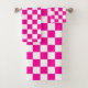 Abstract digital art of Neon Pink and white squares in a chequered formation.