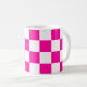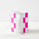 Abstract digital art of Neon Pink and white squares in a chequered formation.