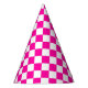 Chequered Neon Pink and White Party Hat