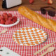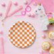 Chequered Orange and White Paper Plate