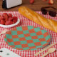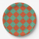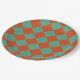 Chequered Orange & Green Retro Chic Birthday Party Paper Plate