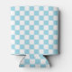 Abstract digital art of pastel blue and white squares in a chequered formation.