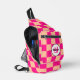 Chequered peach hot pink geometric retro Monogram Sling Bag. Cool fashion accessory bag for anyone. Cool retro chequered geometric square pattern. Vintage tile peach and hot pink modern chequered. Create a unique and personalised bag with a custom touch! Modern monogram with your initial and your name for that extra personal flair.