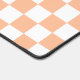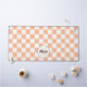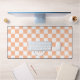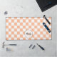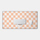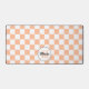 Chequered peach white geometric retro Monogram Desk Mat. Unique cool desk mat for office, room, work, workshop, gaming room.. Chequered squares peach geometric retro pattern gift for her. Cool retro chequered geometric square pattern. Vintage tile modern chequered design. Personalise with your custom initial and name.