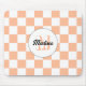 Chequered peach white geometric retro Monogram Mouse Pad. Chequered squares geometric retro pattern gift for her. Cool retro chequered geometric square pattern. Vintage tile peach white modern chequered. Personalise with your custom initial and name.
