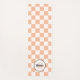 Chequered peach white geometric retro Monogram Yoga Mat. Personalise with your custom initial and name.