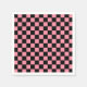 Abstract digital art of pink and black squares in a chequered formation.With the ability to change the white squares by changing the background colour to match the white squares.