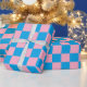 Abstract digital art of pink and turquoise squares in a chequered formation.