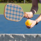 Chequered Plaid Beige Blue Grey And Peach Pickleball Paddle