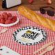 Chequered yellow preppy smile one cool dude 1st birthday paper plate.