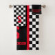 Cross the finish line in bathroom decor with the Chequered Racing Stripe Black and Red bath towel set. Personalise with your name and initial.