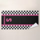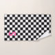 Cross the finish line in bathroom decor with the Chequered Racing Stripe Pink and Black bath towel set. Personalise with your name and initial.