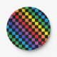 Chequered Rainbow Black Paper Plate