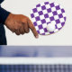 Abstract digital art of royal purple and white squares in a chequered formation.