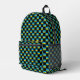 Chequered Rwanda Flag Pattern Backpack features a stylish black chequered pattern with squared rendition of the country's flag. Great gift for your favourite college student or anyone on the move with an abiding interest in this nation.