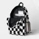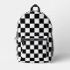 Chequered squares Black and White geometry Printed Backpack. Cool fashion accessory bag for her. Cool retro chequered geometric square pattern. Vintage tile Black and White modern chequered. Create a unique and personalised backpack with a custom touch!