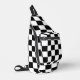 Chequered squares Black and White geometry Printed sling bag. Cool fashion accessory bag for him and her. Cool retro chequered geometric square pattern. Vintage tile Black and White modern chequered. Create a unique and personalised backpack with a custom touch!