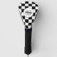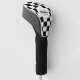 Chequered squares black and white retro Monogram Golf Head Cover. Personalise Golf Accessories with your custom initial and name. Cool retro black and white chequered geometric square pattern design.