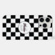 Chequered squares black and white retro Monogram iPhone Case. Personalise with your custom initial and name.