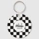 Chequered squares black and white retro Monogram keychain. Accessories gift for her. Cool retro chequered geometric square pattern. Vintage tile black white modern chequered. Personalise with your custom initial and name.