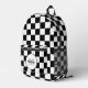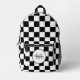 Chequered squares Black and White geometry Monogram Printed Backpack. Cool fashion accessory bag for anyone. Cool retro chequered geometric square pattern. Vintage tile Black and White modern chequered. Create a unique and personalised backpack with a custom touch! Modern monogram with your initial and your name for that extra personal flair.